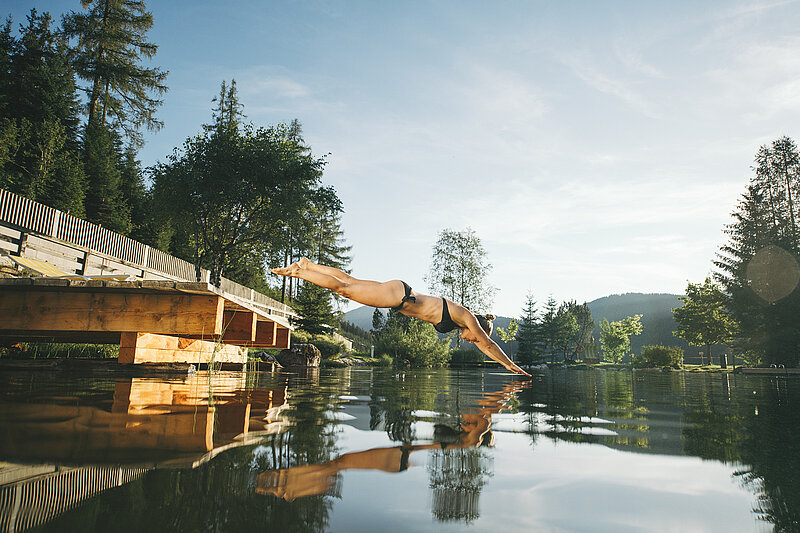 - Wohlfühlmomente und Sonnenstunden im großzügigen Gartenareal mit Almsee und solarbeheiztem Schwimmbiotop auf über 10.000 m²
